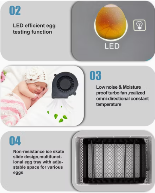 Designed with modern farming needs in mind, this incubator features automatic temperature and humidity control, a 360° visible hatching chamber, energy-efficient operation, and a durable build that works well in various farm environments. It is suitable for poultry breeders, small farming businesses, agricultural education programs, and anyone looking to boost production without needing large-scale industrial machinery.