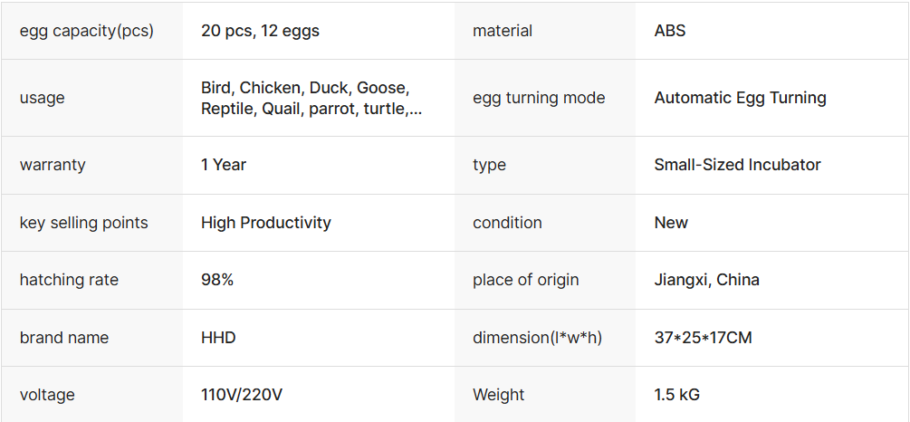 The HD Fully Automatic Mini Egg Incubator – 12-Egg Capacity for Efficient Hatching is engineered to give farmers a dependable, easy-to-use hatching system that supports healthier chicks, higher success rates, and more efficient farm operations.